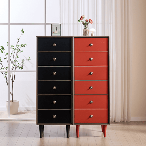 [헨지디자인] 플레르 6단 서랍장 SET (블랙+레드)
